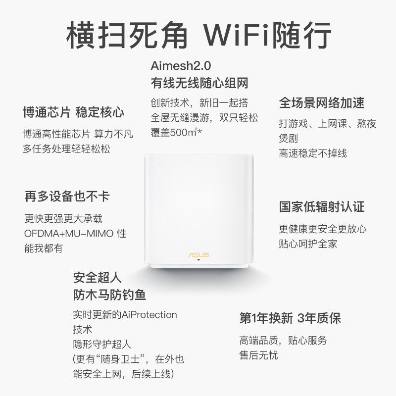 华硕(ASUS)XD6灵耀AX5400分布式路由器WiFi6白色两只装/全屋覆盖WiFi6/5400M博通高速Mesh