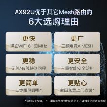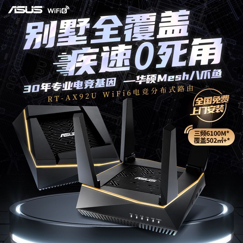 华硕(ASUS)RT-AX92U AX6100M三频千兆WIFI无线路由器大户型分布式全屋覆盖WiFi6