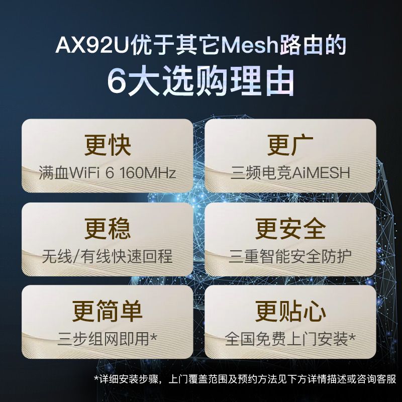 华硕(ASUS)RT-AX92U AX6100M三频千兆WIFI无线路由器大户型分布式单只全屋覆盖WiFi6游戏加速Mesh