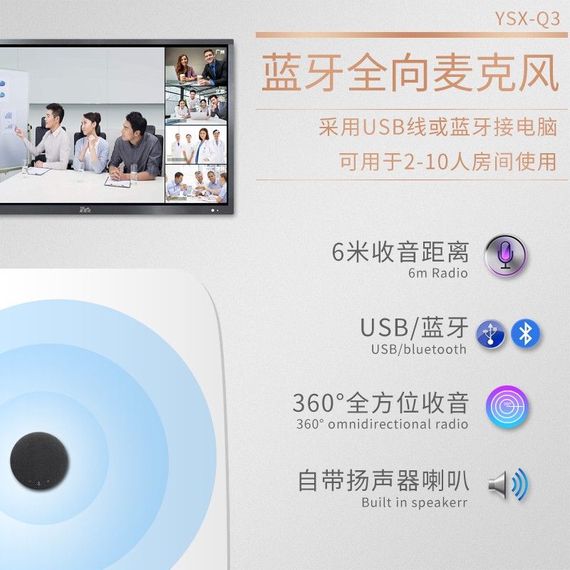 易视讯YSX-Q3蓝牙+USB视频会议全向麦克风(适用10-20㎡视频会议室拾音6米)桌面扬声器