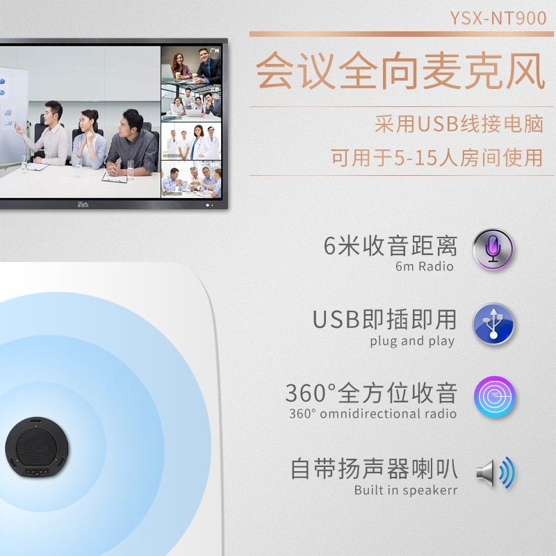 易视讯YSX-NT900视频会议全向麦克风(适用10-40㎡视频会议室拾音6米)桌面扬声器