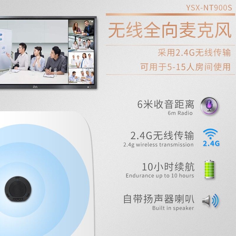 易视讯YSX-NT900S无线视频会议全向麦克风(适用10-40㎡视频会议室拾音6米)桌面扬声器