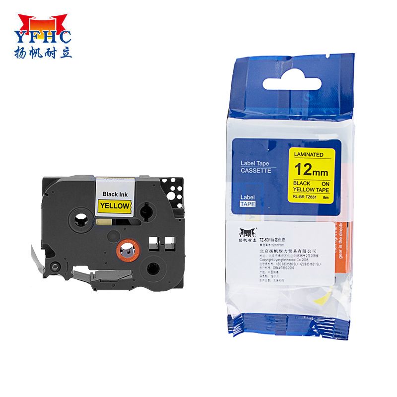 扬帆耐立 标签带 标签纸色带 适用兄弟标签机色带 12mm黄底黑字 TZ-631