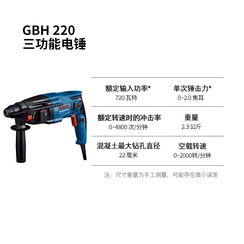 博世(BOSCH)GBH 220 轻型电锤电钻电镐 插电式冲击钻手电钻 多功能合一电锤