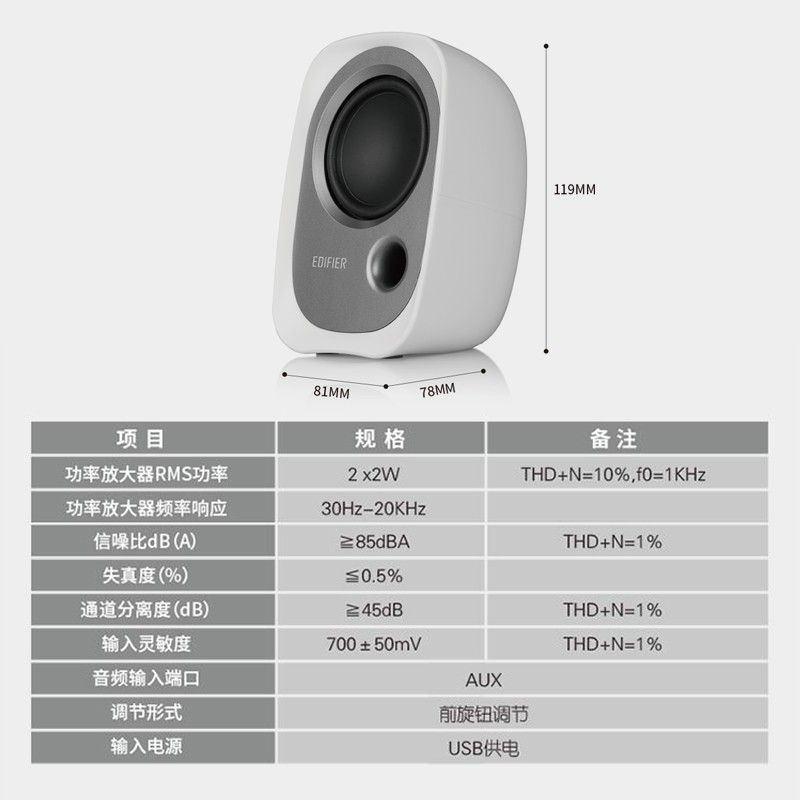 漫步者(EDIFIER)R12U 外观时尚、音质纯正的入门级微型2.0桌面音响 笔记本音箱 电脑音箱 (颜色随机)