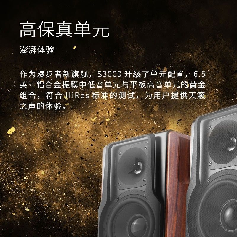 漫步者(EDIFIER)S3000 新旗舰 无线HIFI 书架式立体声有源音箱 客厅音响 电视音响