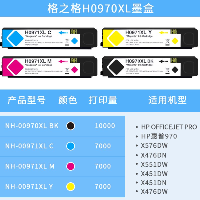 格之格适用HP970XL HP971墨盒 x576dw x476dN x551dw x451dw X451dn x476dw CN625AA HP Officejet Pro 墨盒