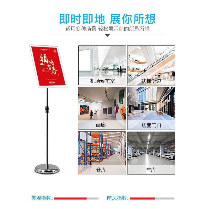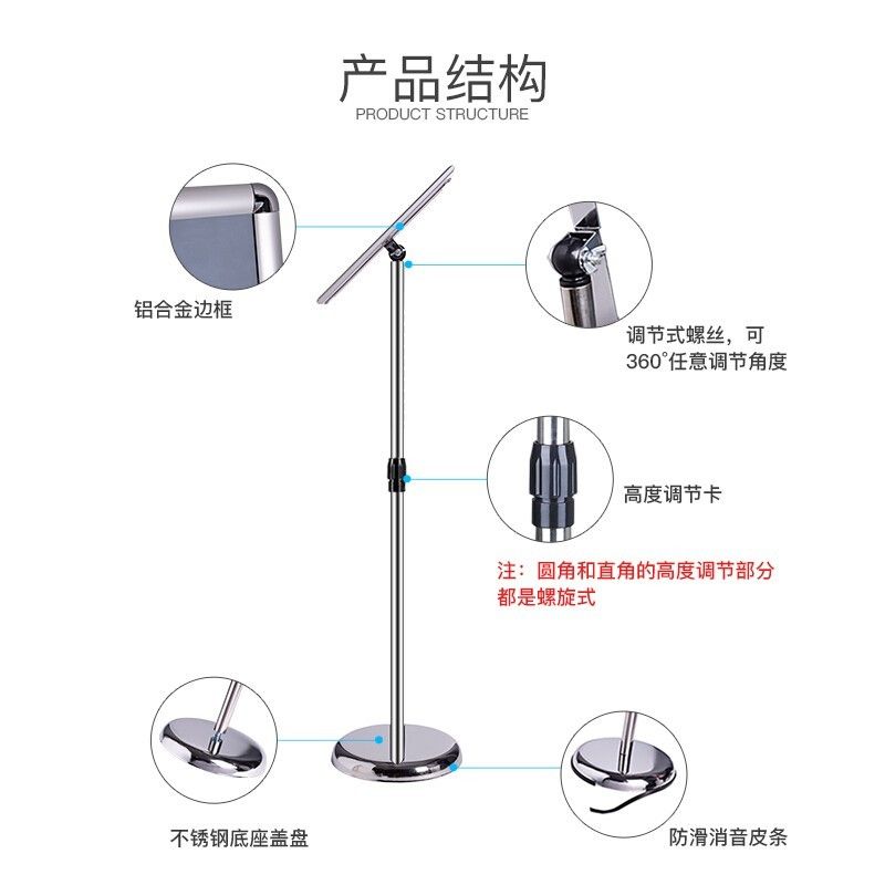 国为指示牌不锈钢立牌可升降展示牌立式广告牌支架指示牌告示牌展示架水牌展架 A3银色直角
