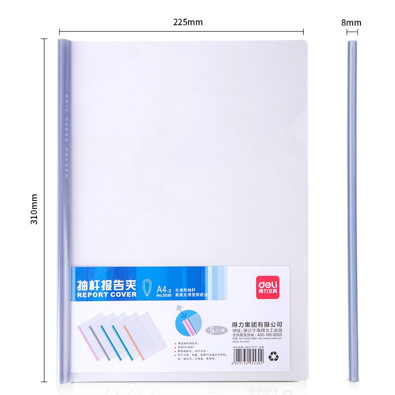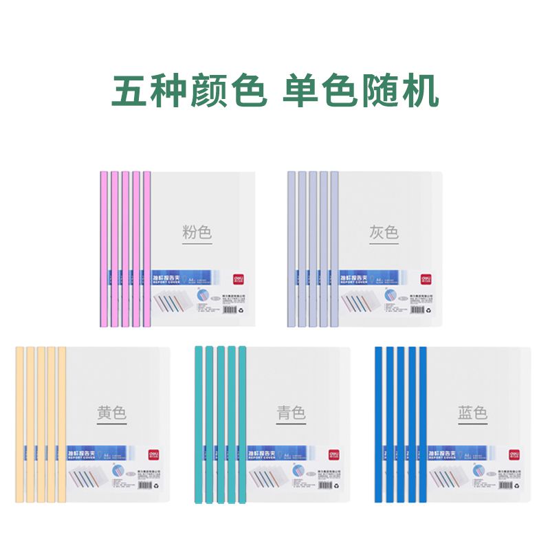 得力(deli) 5530 5只A4水滴形加厚拉杆夹 抽杆报告夹 透明文件资料夹简历夹5只单色随机