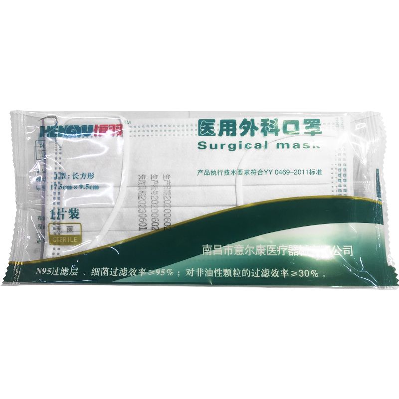 恒羽 医用外科口罩单片独立包装无菌防护一次性口罩 【无菌】医用外科口罩50片*1盒(包装以实物为准)