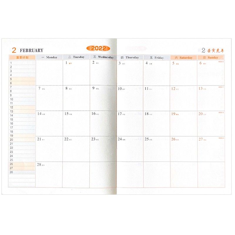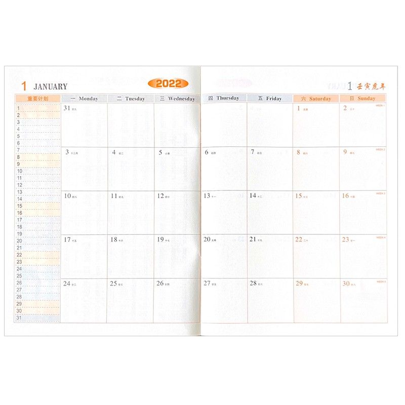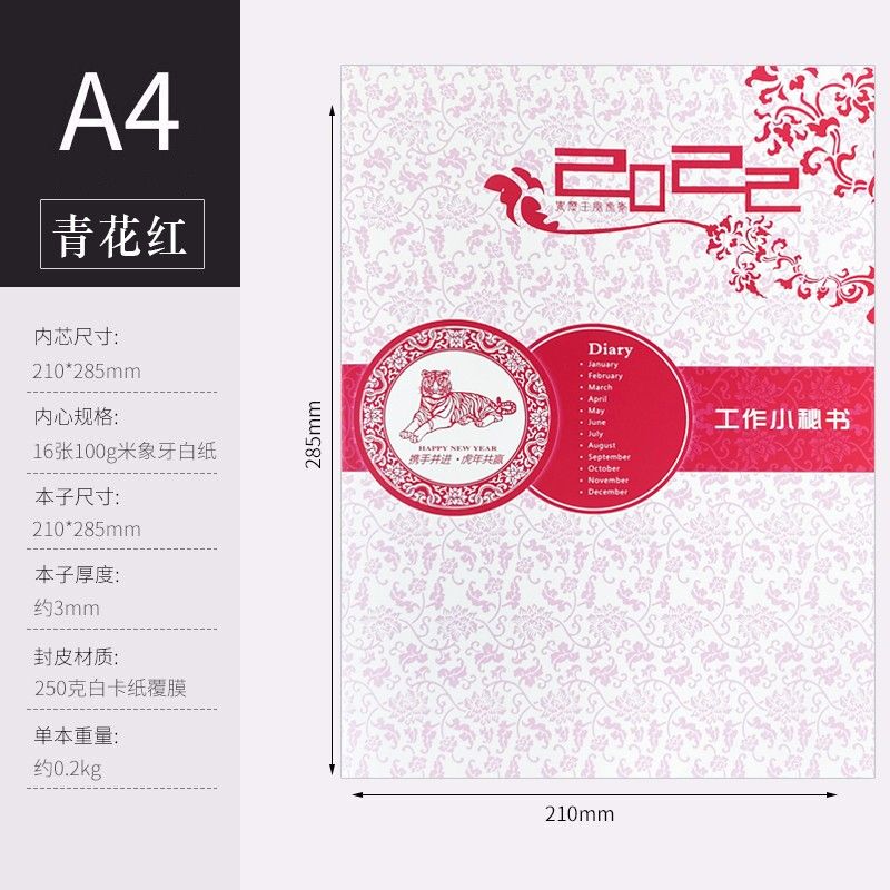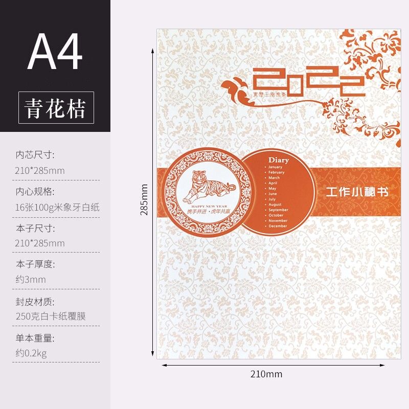 欧唛2022年小秘书/工作计划本/虎年工作小秘书/效率手册/月计划本/日程本/A4 青花版