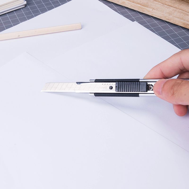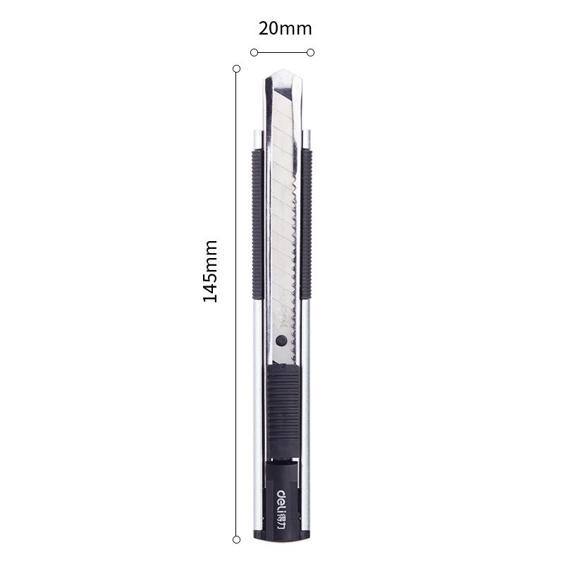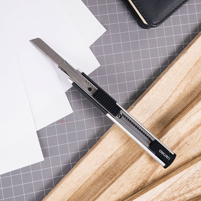 得力(deli)锌合金自锁功能安全美工刀 软包胶舒适手感 银色2072