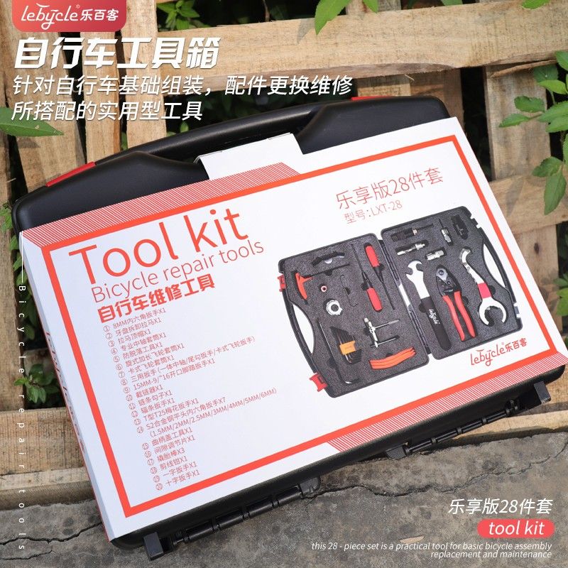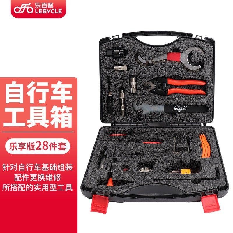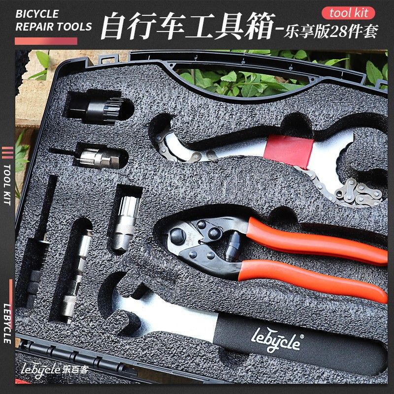 乐百客自行车修理工具套装维修保养修车辐条扳手链条飞轮中轴拆卸便携工具箱 【乐享版】28件套