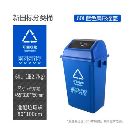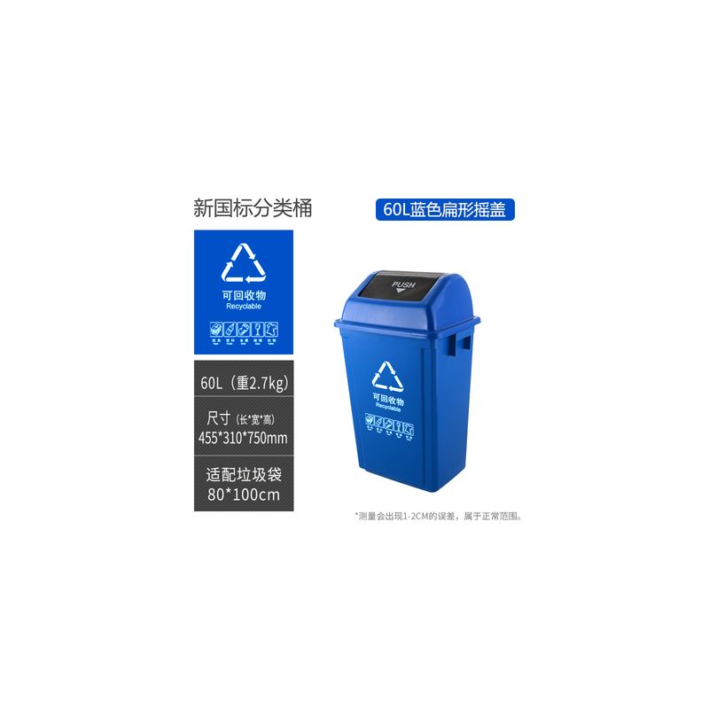 户外摇盖式翻盖分类垃圾桶公共场所办公室用厨余可回收其他垃圾桶60L