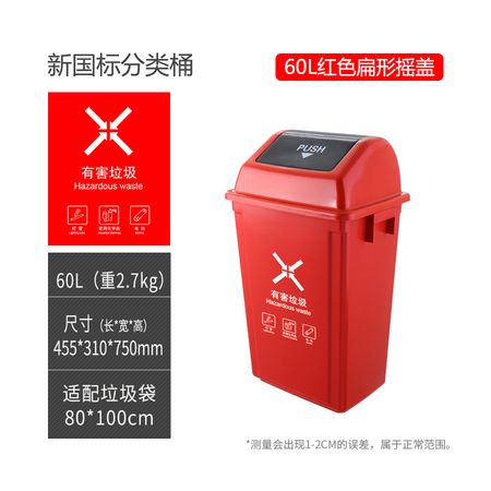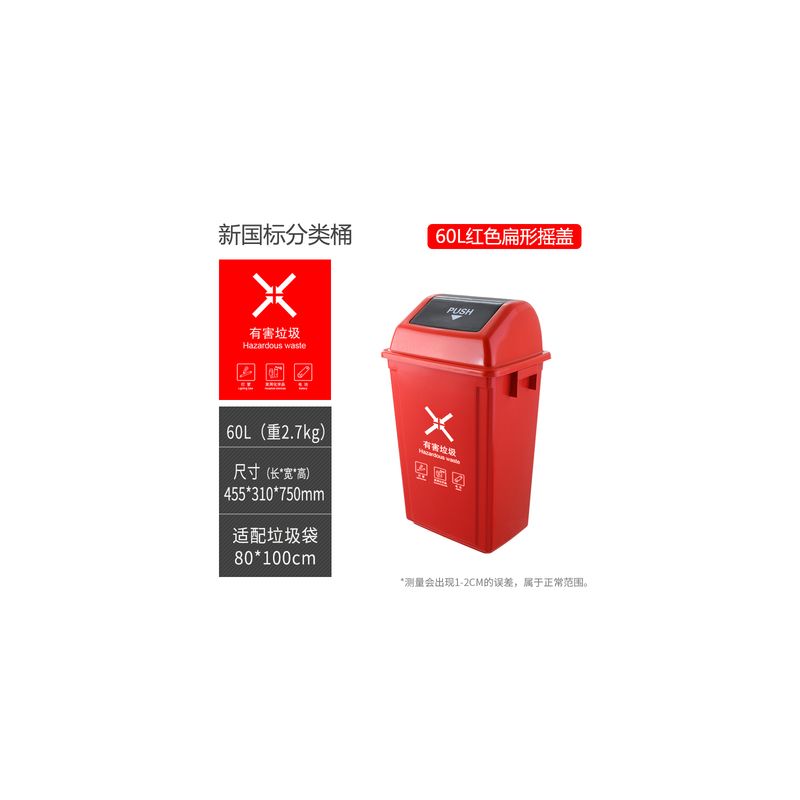 户外摇盖式翻盖分类垃圾桶公共场所办公室用厨余可回收其他垃圾桶60L