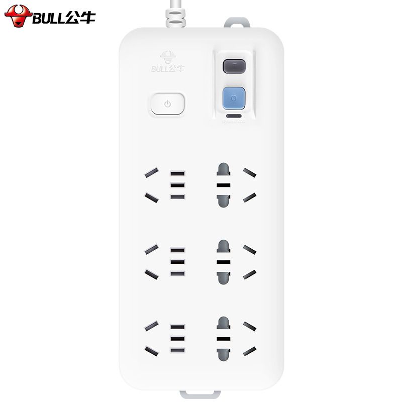 公牛电源 漏电保护 带保护门插座接线板 插线板 拖线板插排GN-705全长3米 新