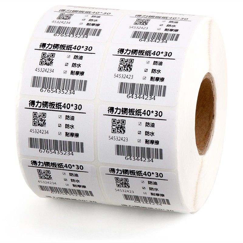 得力(deli)通用铜版纸不干胶标签纸-条码纸-打印贴纸 热转印打印纸 铜板卷