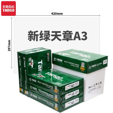 天章(TANGO)新绿天章A3复印纸 中高品质款打印纸 500张/包 5包/箱(2500张)