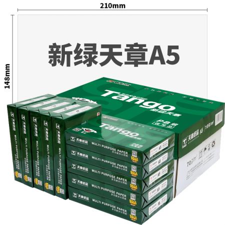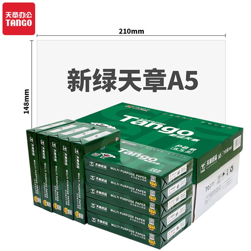 天章(TANGO)新绿天章70gA5(14.8cm*21cm)复印纸 中高品质 电子发票 空白凭证打印纸 500张/包 10包/箱 5000张
